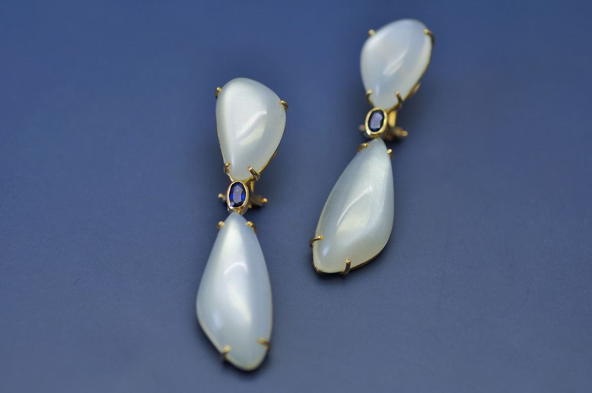 Ohrringe aus 14kt Gold mit Mondsteinen und Saphiren